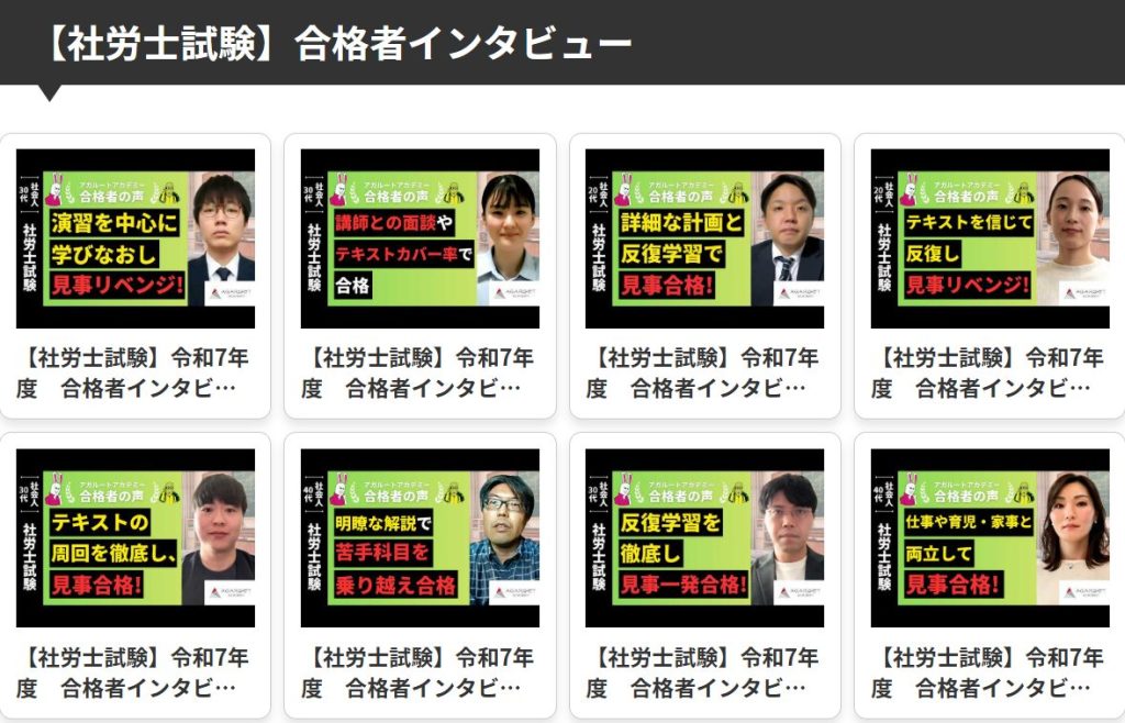 合格者インタビューの様子は、アガルートの公式サイトから閲覧することができます。