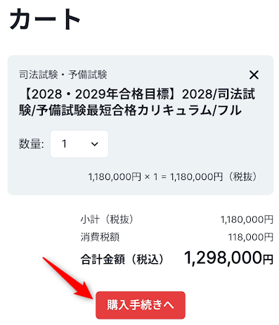 【例1】司法試験予備試験講座(1,298,000円)の場合