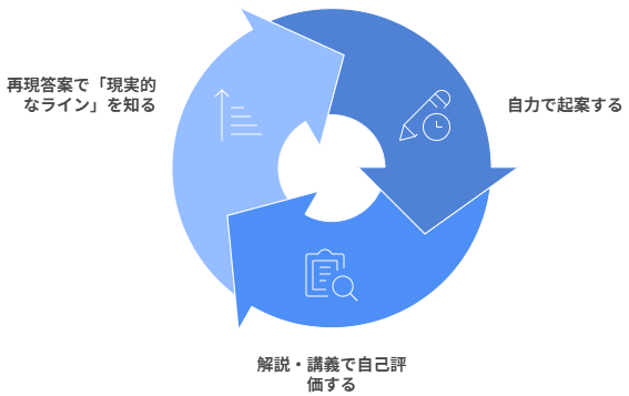 試験時間内に現実的に書ける「実戦的な答案」が手に入ることが高く評価されています。