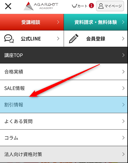 ここではアガルートの割引制度の申請手順について説明します。
