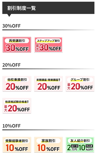 他資格試験合格者割引(10〜20%OFF)