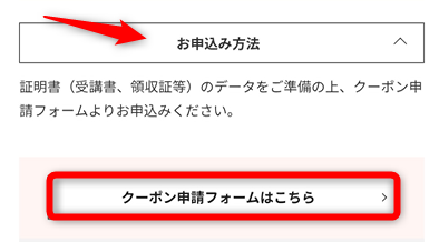- 申請フォームから申し込むと、専用クーポンが届きます